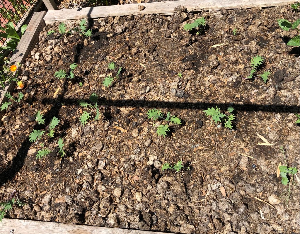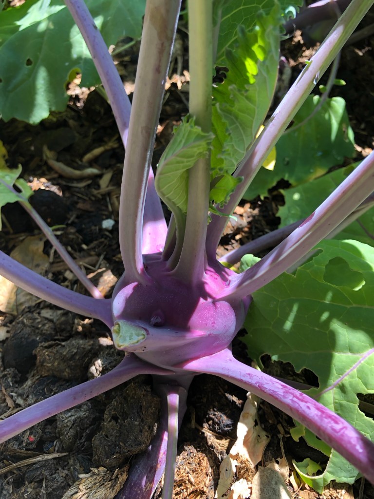 I started some kale, purple mizuna and purple kohlrabi in late winter. I planted them in the garden right before my transplant, hoping to have some good nutrition out of the garden afterwards when I got home.